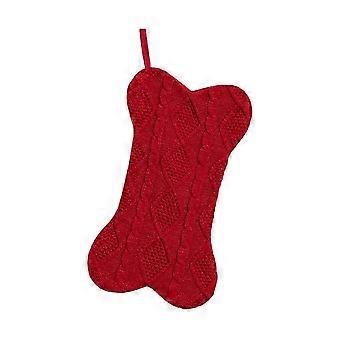 Chien Bas de Noël Tricot Forme D’os Chien Bas Noël Grands Bas Pour Animaux De Compagnie Décoration Suspendue