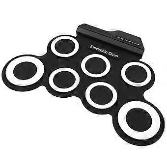 Batterie électronique 7 pads 5 accordages 8 morceaux de démonstration 3 rythmes Pad d'entraînement portable USB enroulable