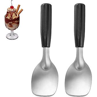 2 cuillères à glace, cuillère à glace en acier inoxydable avec manche en plastique (noir)