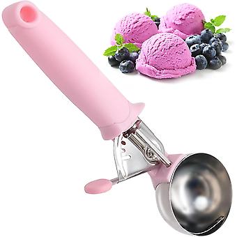 Cuillère à crème glacée, cuillère à dessert aux fruits à biscuits en acier inoxydable avec gâchette facile, outil de cuisine robuste et résistant, pour la cuisson de la pâte à biscuits, rose TTMA