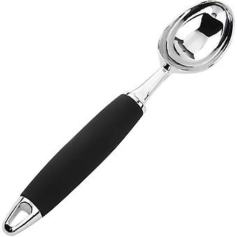 Cuillère à glace robuste en acier inoxydable avec poignée en caoutchouc antidérapante. Pelle à glace professionnelle en métal. Compatible lave-vaisselle. Noir.