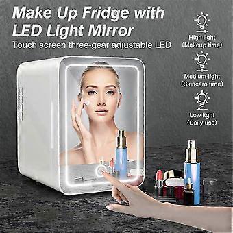 Réfrigérateur de soins de la peau - Mini réfrigérateur avec miroir LED à intensité variable, refroidisseur et réchaud, pour réfrigérer le maquillage, les soins de la peau et les aliments, mini-réfrigérateur pour chambre à coucher, offi