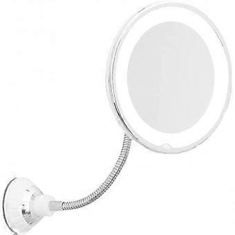 Miroir loupe LED avec poignée flexible et rotation à 360° - pour salle de bain avec support à ventouse - 17,5 cm