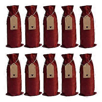 1Set/12pcs Universel Sacs À Vin Protecteur Imitation Lin Largement Appliqué Bouteille Wraps pour La Fête (Vin Rouge)