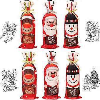 Sac de bouteille de vin de Noël 6 pièces, décorations de couvercle de bouteille de vin de Noël réutilisables, sacs de bouteille de vin de Noël en tissu non tissé, pour votre table Holi