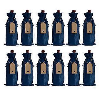 12 pcs sac à vin en toile de jute réutilisable, sacs cadeaux de bouteille de vin avec cordon de serrage, étiquettes pour cadeau, Noël, mariage, anniversaire, fête de vacances, etc. (bleu)