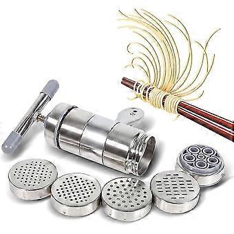 Machine à pâtes électrique automatique avec 5 moules interchangeables pour spaghetti et fettuccine, sans fil, en acier inoxydable multicolore.