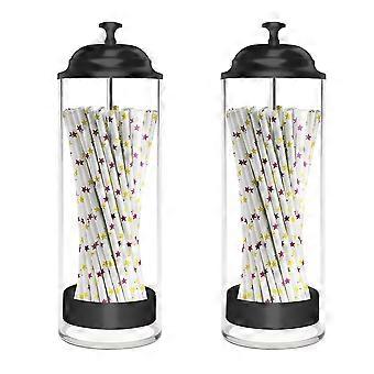 Distributeur de pailles rayées - Rangement pratique et présentation élégante pour restaurant, bar, cuisine, comptoir (lot de 2)