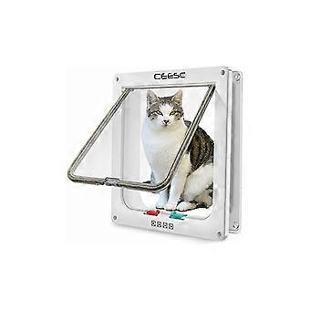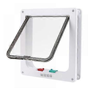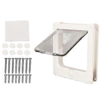 (L, Blanc) Porte pour chat, porte pour animaux de compagnie verrouillable à 4 voies pour chat, petit chien, facile à installer et à utiliser