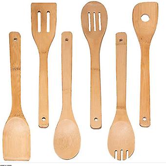 Ustensiles de cuisine en bois de bambou - Ensemble de 6 accessoires anti-rayures (cuillères, spatules) - Ustensiles de cuisine en bambou 100% écologiques et naturels Woosien
