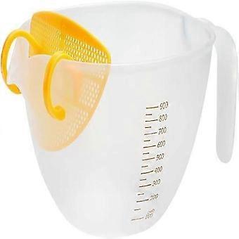 Bols à mélanger avec poignée, bol à battre les œufs avec bec verseur et filtre, bol à fouetter les œufs, tasse à mesurer en plastique, mélanger, cuisiner, cuire au four, préparer, 1000ML, CLear Yellow