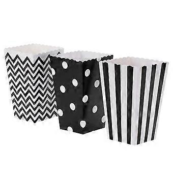 30pcs Popcorn Carton Stripe Wave Dot Pattern Chicken Cartons Snack Container pour les fêtes d’anniversaire Baby Shower Graduation (noir)