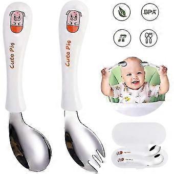 Ensemble de couverts pour enfants, cuillère fourchette vaisselle ensemble cuillères d’entraînement incurvées fourchettes pour enfants