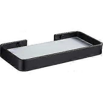 Douche Caddy Pas de perçage Verre trempé Salle de bain Étagère rectangulaire Douche Caddy Organisateur Noir (26cm)