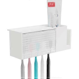 Porte-brosse à dents mural et nettoyeur Nettoyage intelligent de la lumière et séchage par ventilateur Couvercle rotatif automatique Étui à brosse à dents