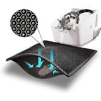 Tapis de litière pour chat pour animaux de compagnie pliable double couche, récupérateur de litière antidérapant, noir, taille M 40 x 50 cm