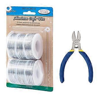 6 Rolls 18 Gauge Aluminum Craft Wire with Side Cutting Plier 450 Feet Jewelry Beading Wire Bendable Metal Wire for Jewelry Making Craft Silver