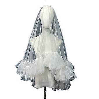 Voile de mariée romantique en tulle à deux niveaux et franges, avec peigne à cheveux intégré. Idéal pour les photos de la mariée lors d'événements en chapelle ou en maison d'hôtesse. Blanc.