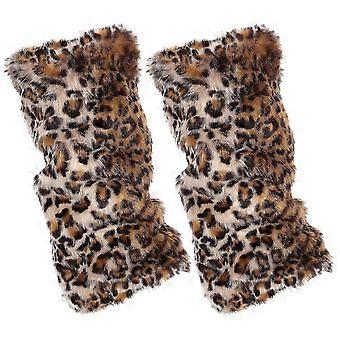 40cm fausse fourrure jambe chauffe-peluche mode longue jambe chauffe-botte poignets couverture pour femmes filles (couleur léopard) (PrettyJ)