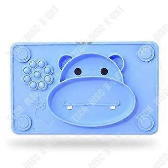 Assiette compartimentée cyan avec 4 attaches pour jouets, set de table à ventouses en silicone, compatible lave-vaisselle, pour bébés et enfants.