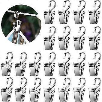 25 Pack Clips rideaux en métal Clip avec crochets pour guirlandes lumineuses, clips de rideau en acier inoxydable argent pour photo