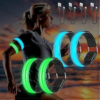 2 x Bande réfléchissante Bras Jambe Sangle Ceinture 4 Led Lumière Cyclisme Course Jogging