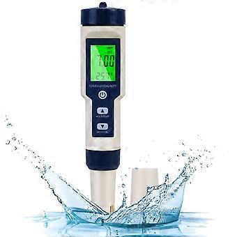 Ph Mètre, 5-en-1 Ph / Tds / Ec Testeur de température avec rétroéclairage, Plage de mesure de 0 -14 Ph Précision 0.1 Ph, Ph Value Meter Piscine Eau potable Swimmin