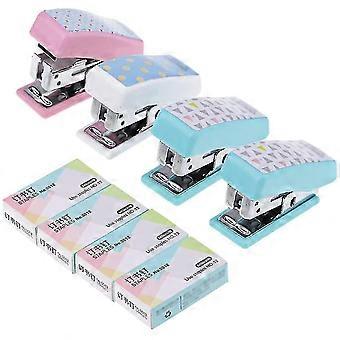 4pcs Mini Cute Stapler Set, petite agrafeuse pratique pour cadeau d’enfant étudiant, papeterie pour fournitures de bureau, dissolvant d’agrafes intégré