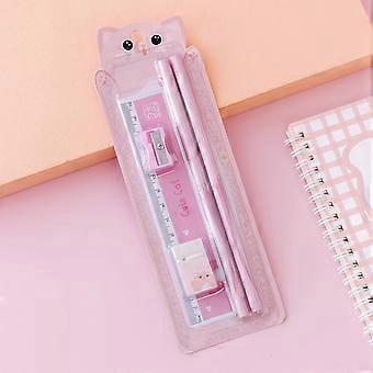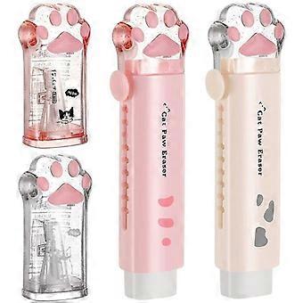 Sabary Lot de 4 articles de papeterie motif patte de chat mignons : 2 taille-crayons kawaii et 2 gommes rétractables pour enfants, pour la maison, le bureau ou l’école (blanc, rose)