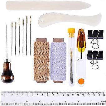 Ensemble de 16 outils de kit de reliure Set Bone Folder Paper Creaser, Waxed Thread, Awl, Aiguilles à grand œil pour bricolage Bookbinding Crafts And Sewing