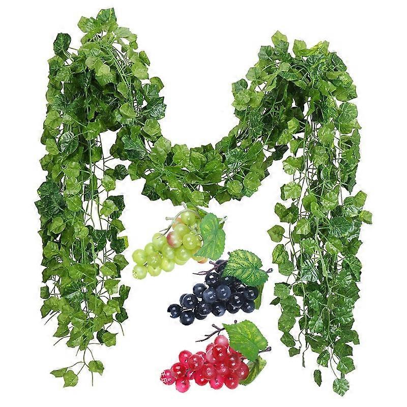 New 12 Strands Artificial Fake Grape Vines Ivy Leaves with 3 Strings Grapes for Wedding Party Home Wall Decoration