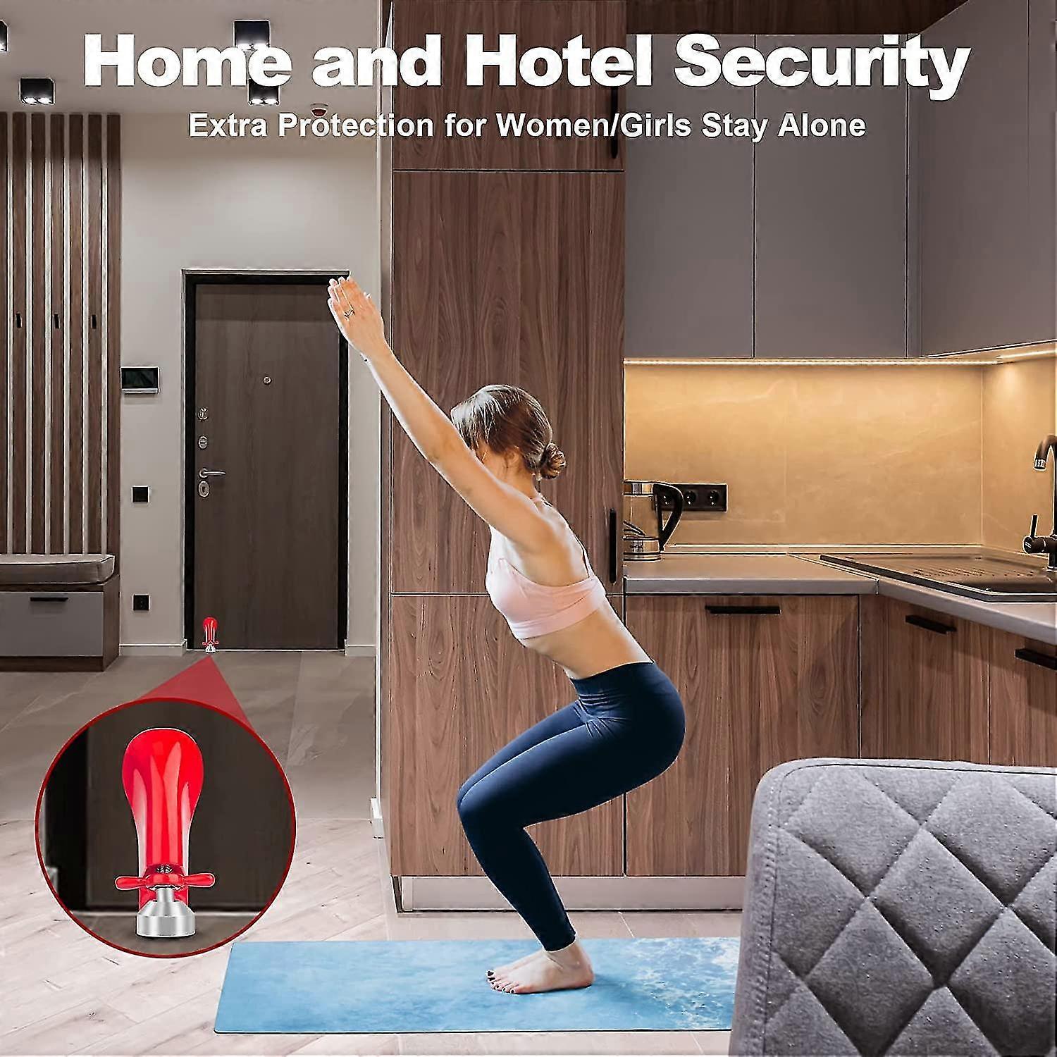 Home and Hotel Security This Portable Door Station is an industrial strength access control device that prevents unwanted forced entry and protects home/travel hotels/apartments. Also for everyone in public buildings, schools and offices. Easy to install without tools. It just takes a little time to get used to the gap under the swing door. Place the door lock detent directly under the door handle, then adjust the foot so that it grips the ground firmly. In an emergency, the quick release is unlocked by an upward movement. Note: Test the door to make sure the door stop is securely in place. Upgraded doorstop The upgraded doorstop is made of thickened aluminum alloy, which is crack-resistant and durable. The bottom is made of high-quality rubber material, which has strong grip and wear resistance. Great design uses force displacement to block the door against attempts to force entry. Makes you feel at ease and safe. Easy to carry The anti-theft door stopper is very compact and has an extra storage pocket. It is very convenient to carry on business trips and tourist accommodation, just put it in your bag or pocket. Compatibility All This door safety stopper is better for door clearances of 0.12-1.38" (3-35mm) and door thicknesses of 1.18-1.97" (30-50mm). Compatible with all types of floors, the hinge and angle system will lock securely to carpet, tile and composite when external pressure is applied to the door.