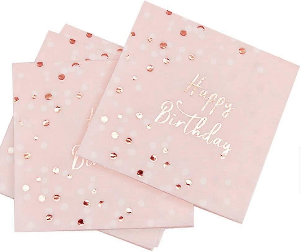 Pack of 32 Happy Birthday Napkins Pink, High Quality Paper Napkins Pink 33x33cm for Girls Birthday Party Decoration