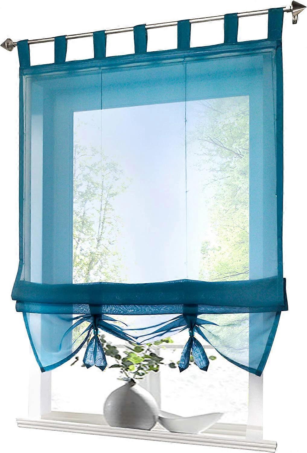 Pack of 1 Roman blind with loops, curtains, kitchen, transparent, loop blind, curtains, modern voile, blue, W x H 60 x 155 cm.