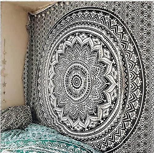 Multicolored Indian Tapestry Wall Hanging Wall ClothTapestry Boho Style Decorative Cloth/Bedspread (Black, 150 * 150)