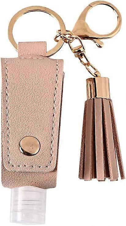 Portable Plastic Travel Bottle with Leather Hand Sanitizer Keychain Holder with Tassel Holster (Black)
