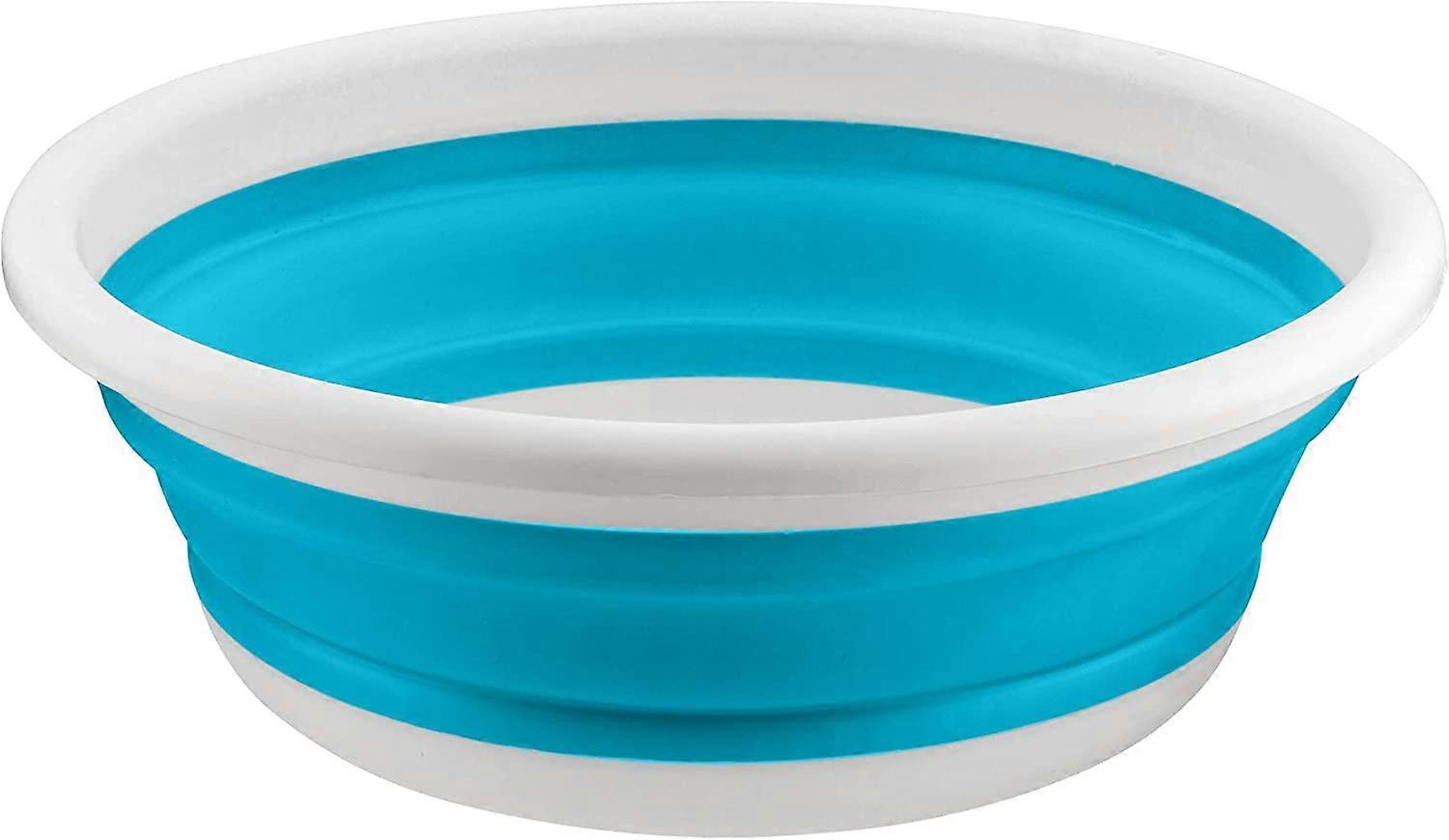 Foldable 5L Medium Round Washing Up Bowl Multi-Purpose Outdoor Travel Wash Basin Portable Silicone Plastic Bucket (Blue)