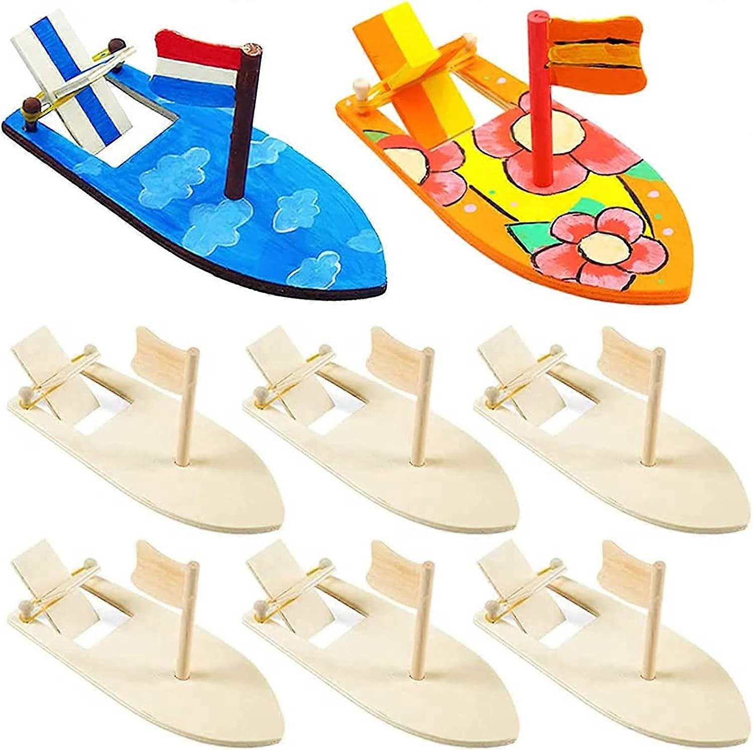 DIY Wooden Sailing Boat, 8 Pcs Wooden Boat Toy Set Painting DIY, Rubber Band Paddle Boat Kids Creative Handmade Toys
