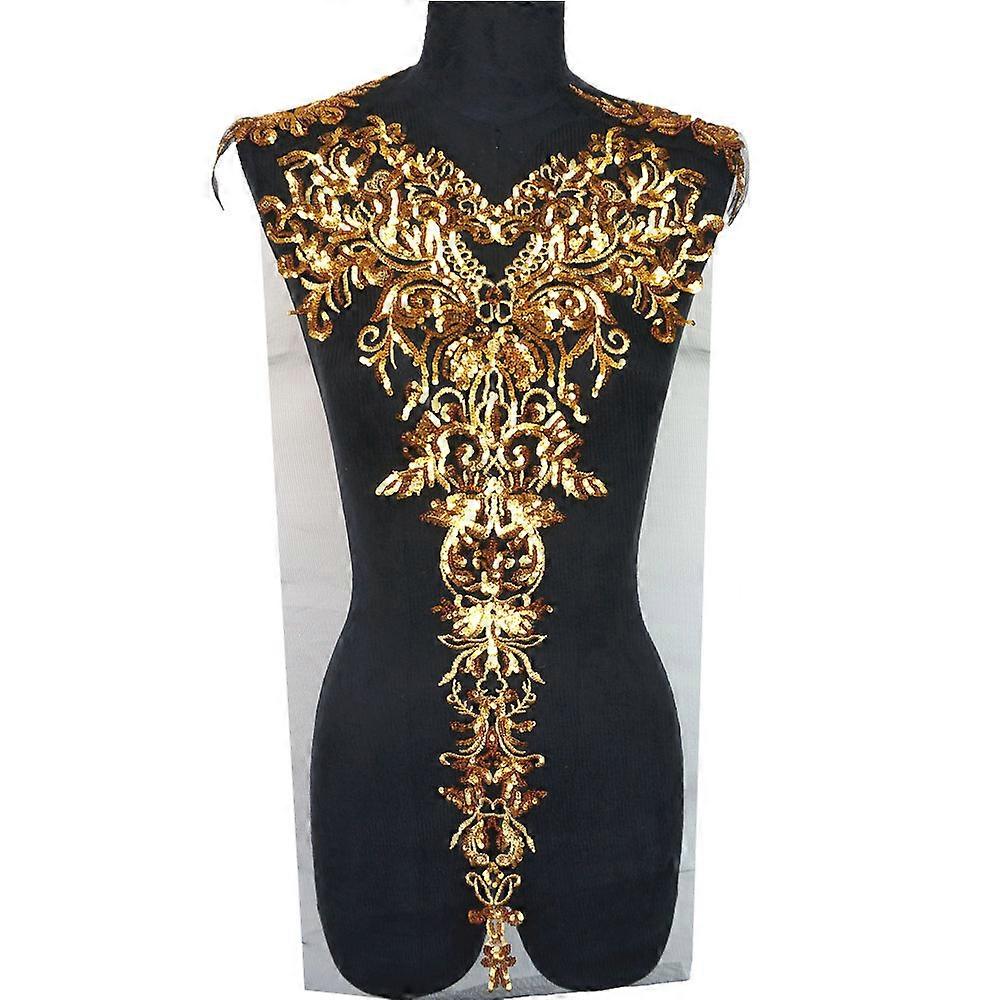 1 Set Gold Sequined Appliques Red Blue Black Mesh Epaulette Embroidery Lace Fabric Wedding Sew On Patch For Dress DIY Decoration