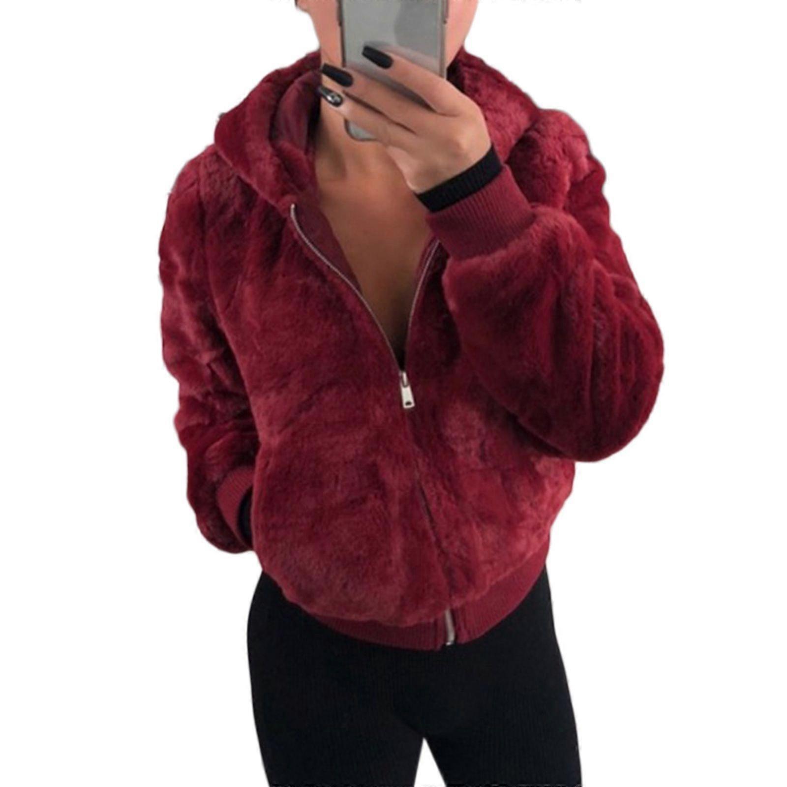 Women Winter Long Sleeve Zip Up Hooded Cardigan for Jacket Fuzzy Plush Velvet Outwear Solid Color Oversized Thicken Warm Coat with Pockets