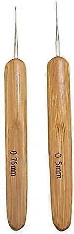 Dreadlocks Crochet Hook for Hair, Locs Crochet Needle Steel Crochet Hook Lock for Braid Craft, 2pcs (0.5mm+0.75mm), Bamboo HandleBrown2pcs