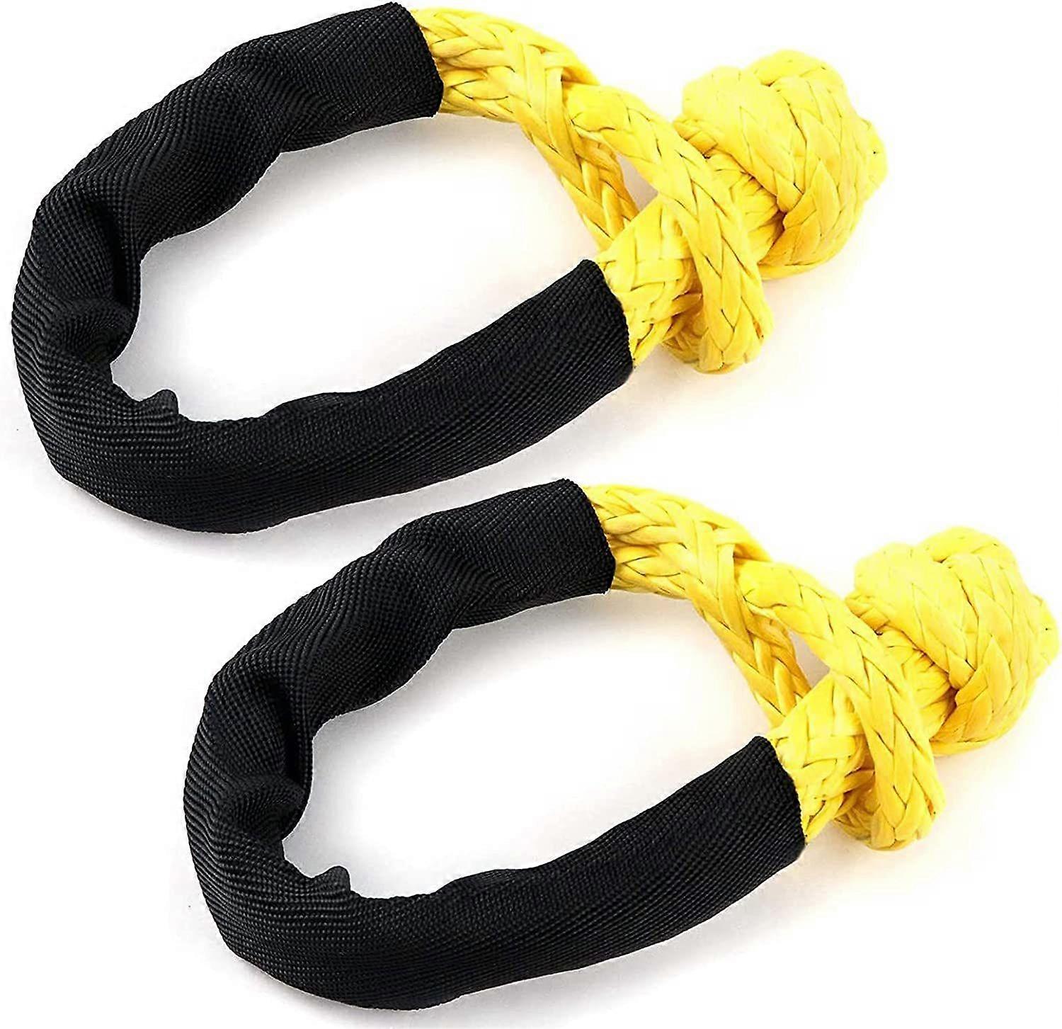 XIANQI Durable and Safer The soft shackle made of ultra-high molecular weight polyethylene has a total woven thickness of 1/2'. Our products can reach an amazing crushing force of 37000LBS. Compared with traditional steel shackles, it has higher resistance, is more durable and safer. Self-tightening Ring The self-tightening ring design can easily handle all difficult towing points, pulling your vehicle out of ditches, mud and snow without scratching or damaging the paint. Unique Design Using infinite knot design, easy to take off the shackles. Pulling just tightens the knot. More importantly, they will never deform like metal handcuffs! This is why soft shackles have become so popular. Specifications Rope diameter: 1/2"(1.1cm), Rope length: 22"(56cm), Loop inner width: 7"(17.78cm). Wide ApplicationSuitable for various applications, including off-road, highway, 4x4, automobile, ATV, boating, camping, personal watercraft, rock climbing, etc. What you get? Soft Shackle x 2 Specifications Rope diameter: 1/2"(1.1cm) Rope length: 22"(56cm) Loop inner width: 7"(17.78cm) Breaking strength: 37,000 lbs ColorYellow Great Soft Shackle ---- The soft shackle made of ultra-high molecular weight polyethylene has a total woven thickness of 1/2'. Our products can reach an amazing crushing force of 37000LBS. Compared with traditional steel shackles, it has higher resistance, is more durable and safer. ---- The self-tightening ring design can easily handle all difficult towing points, pulling your vehicle out of ditches, mud and snow without scratching or damaging the paint. ---- Using infinite knot design, easy to take off the shackles. Pulling just tightens the knot. More importantly, they will never deform like metal handcuffs! This is why soft shackles have become so popular. Wide Application: Suitable for various applications, including off-road, highway, 4x4, automobile, ATV, boating, camping, personal watercraft, rock climbing, etc. Easy Installation: Equipped with elastic rope, only need to pull the rope to relieve eye tension and eliminate eye knots.