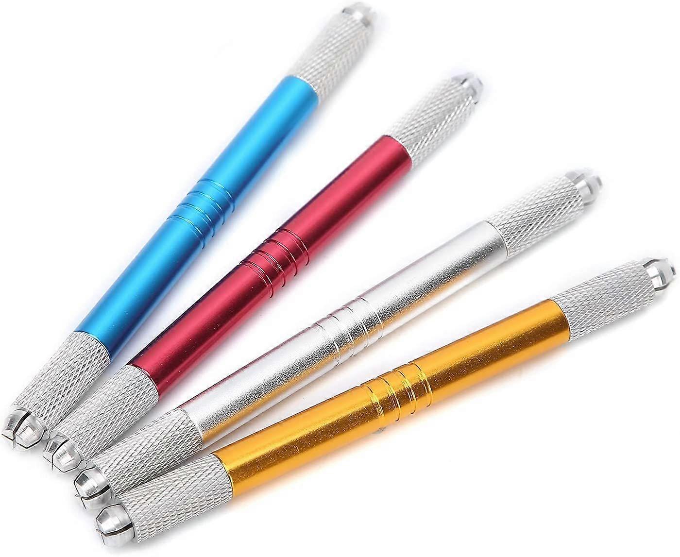 Microblading Pen, 4pcs Double Sided Manual Microblading Pen, Aluminum Alloy Makeup Eyebrow Tattoo Pen Set Accessory, Manual Tattoo Pen KitMulticolorfu