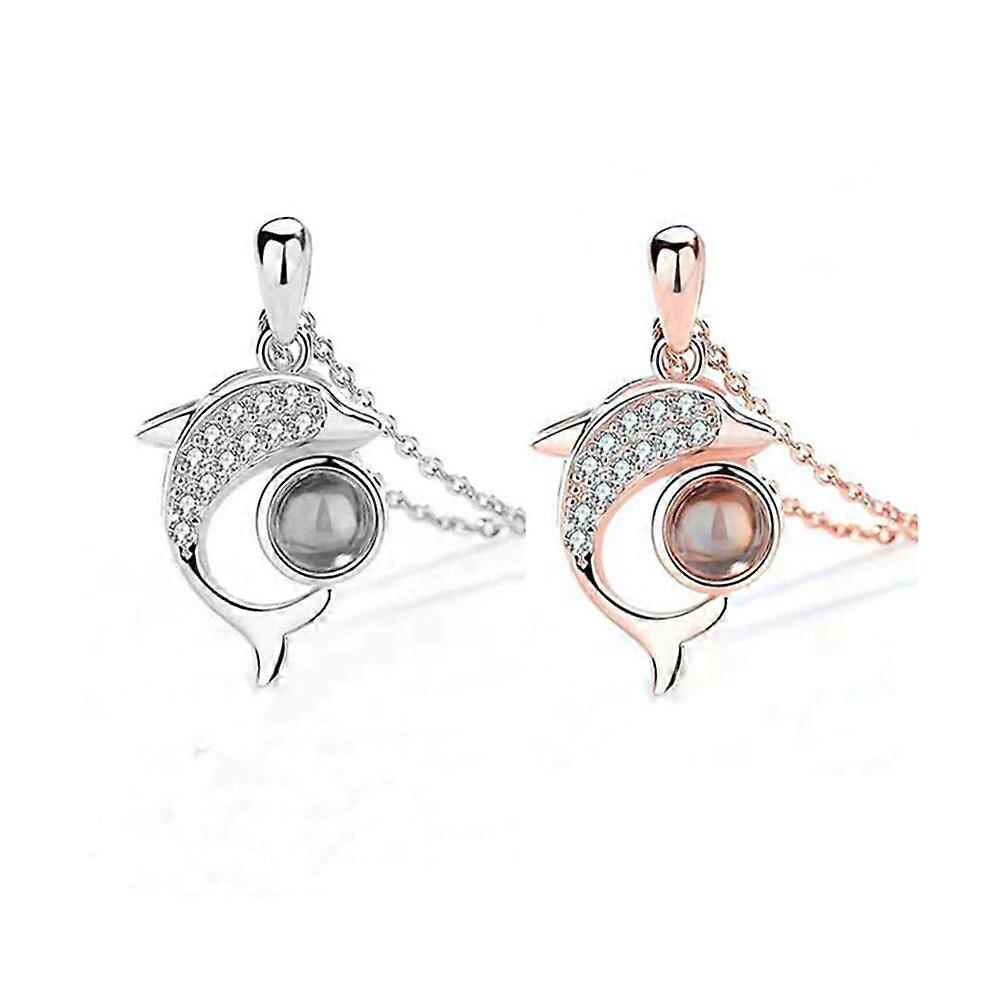 Silver Plated Rose Gold Color Dolphin Necklace 100 Languages I Love You Projection Pendant Necklace for Women Lover Memory Gift