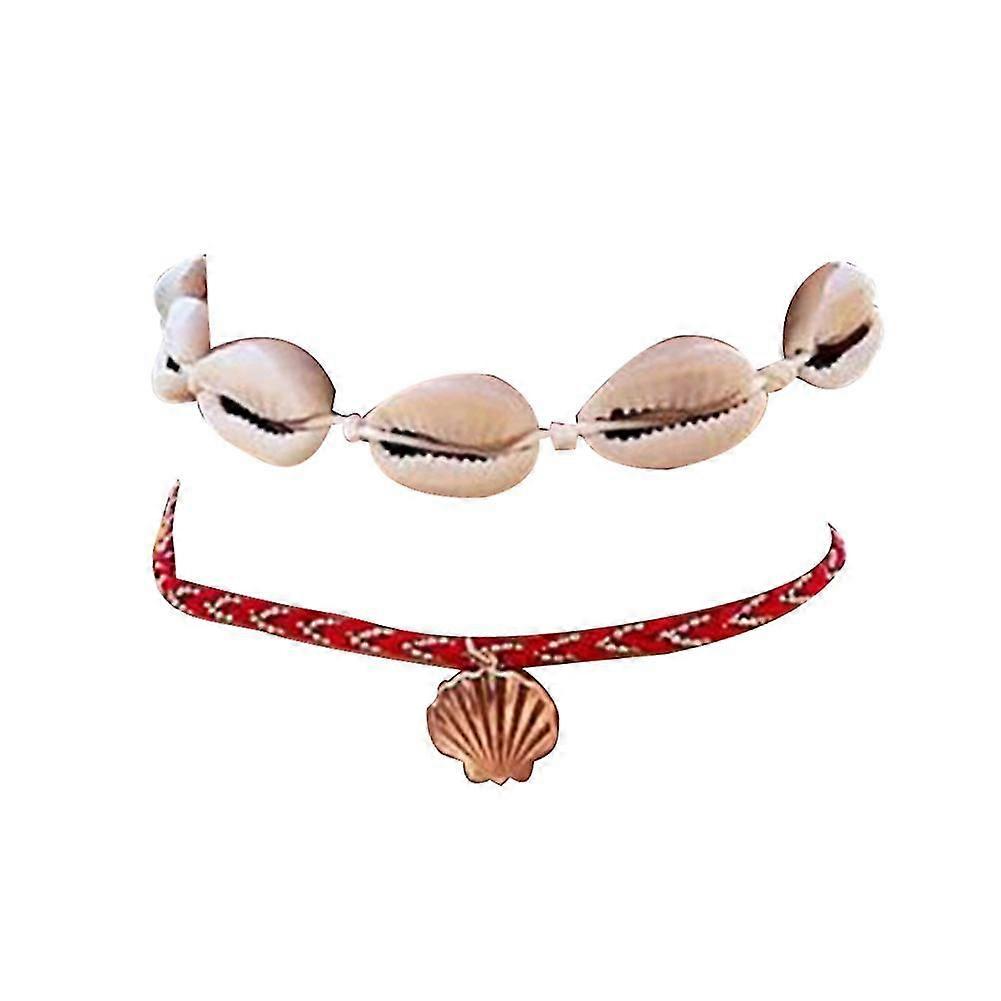 2pcs/Set Cowrie Shell Charm Women Woven Anklet Bracelet Summer Beach Jewelry