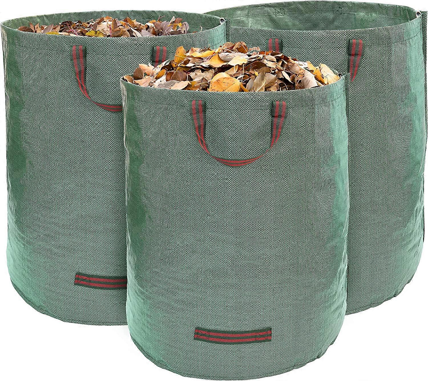 Pack of 3 Large 72 Gallon Garden Bags: each of our foldable debris measuring garden bags (67 x 72 cm), allowing for large capacity waste storage up to 72 gallons to empty large volumes of any type of clutter or waste. REUSABLE BAGS: Our gardening bags can be used repeatedly, thanks to their durable construction with double stitched seams. The tear-resistant material can withstand large amounts of stress, allowing the bags to be recycled as well; Lightweight, flexible and versatile: Whether you need a dumpster bag or something to carry ice for picnics, these versatile bags are convenient and light enough to help you carry or store multiple items. Heavy Duty Polypropylene Woven Fabric: Our tough, durable lawn bags are made from high quality, waterproof polypropylene for reliable use, each with a 50kg weight capacity. 4 CARRYING HANDLES: Two vertical handles at the top and two horizontal ones near the bottom edge make our foldable garden bins easy to move and carry. Reinforced seams maximize their ability to carry heavy loads.