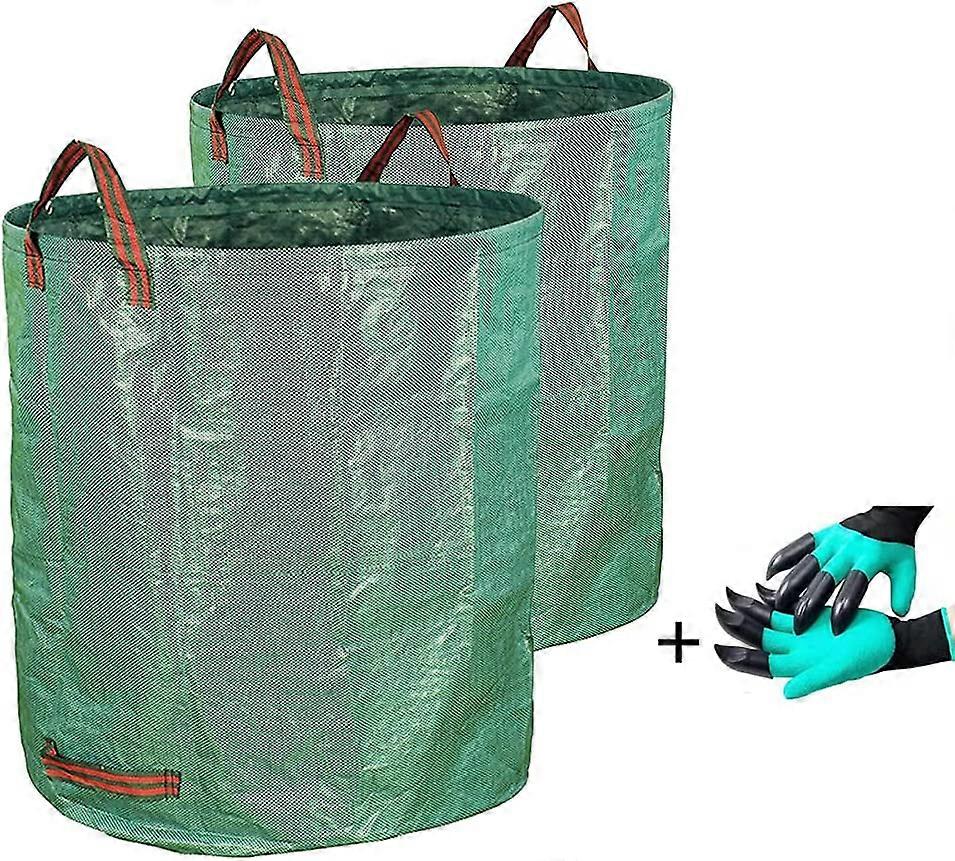 Yard Leaf Bags Reusable Garden Waste Bag with Heavy Duty Gloves for camping, gardening, patio, garden, laundry and garbage 72 gallon pack of 2
