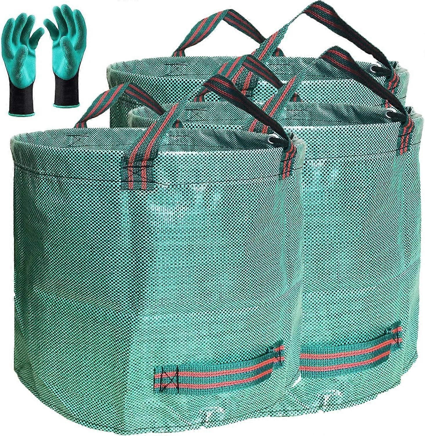 Pack of 3 lawn garden bags 67 x 84cm with coated garden gloves, reusable leaf waste bags, patio bags, laundry container, gardening bag with 4 handles.