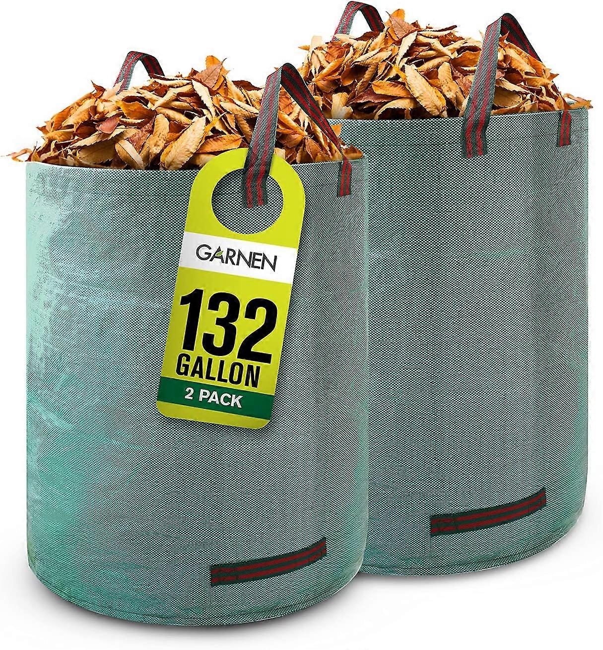 Set of 2 Garnen 32 Gallon Garden Waste Bags, Heavy Duty Foldable/Reusable Leaflet Basket Bags with 4 Reinforced Handles for Garden Containers