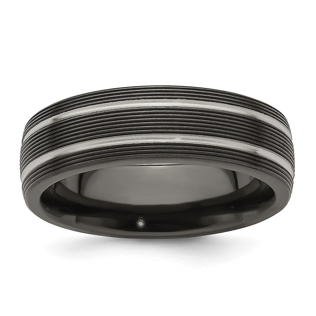 Black Titanium Textured Lines 7mm Band Ring for Women and Men - Ring Size: 6 to 13